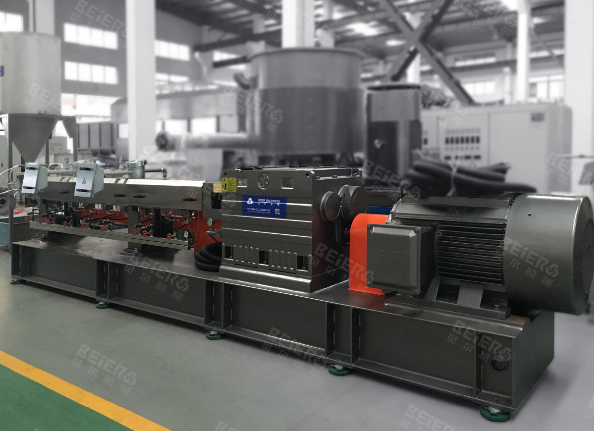 积木式同向平行双螺杆造粒机挤出机:用于各类塑料的造粒,分散性好、具有产量大、塑化好、能耗低,采用渐开线齿轮传动,具有噪音低、运转平稳、承载力大、寿命长等特点。
