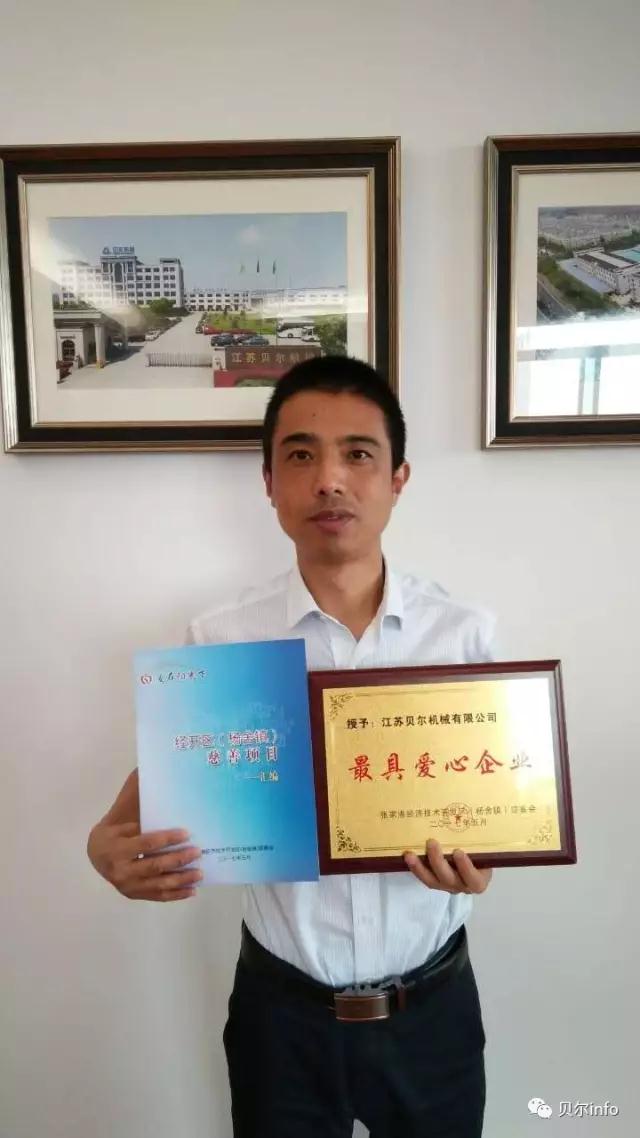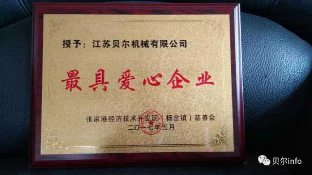 今天,江苏贝尔机械荣获经济技术开发区慈善会颁发的‘最具爱心企业’称号。