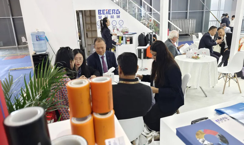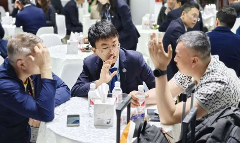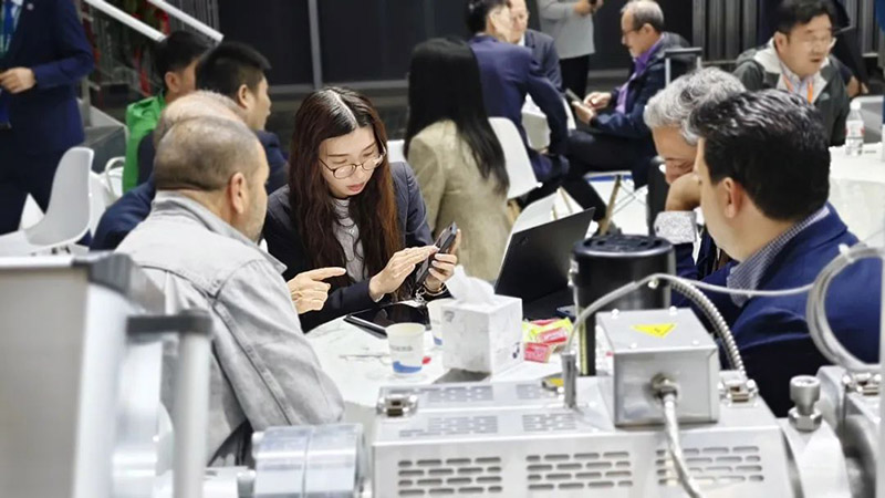在展位现场,随处可见前来参观交流的专业观众,有的是咨询集团产品,有的是咨询的集团业务。洽谈区已经不能满足大家的热情,展台内,展机旁,都是大家相谈甚欢的身影。